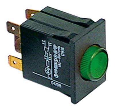 Tryktast Indbygningsmål 30x22mm grøn 2NO 250V Tilslutning Fladstik 6,3 mm - 16A