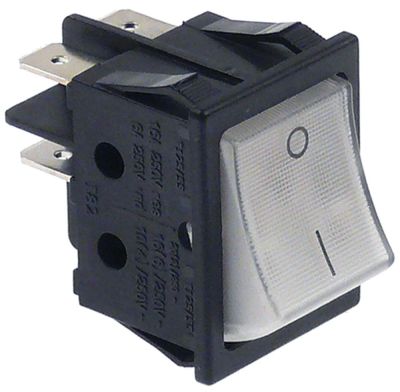 momentary rocker switch 30x22mm white 2 -poles 2NO 250 V 16 A lighted 0-I flat plug
