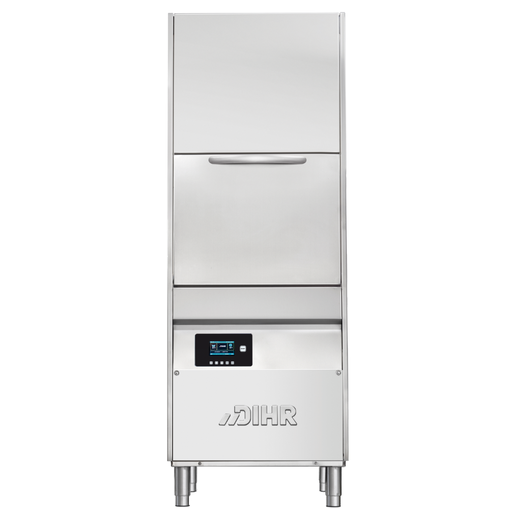 * Varmegenvinding (heatrecovery): HR-systemet er en varmeveksler: Den fugtige varme vanddamp trækkes direkte ud af maskinen, når døren lukkes, og bruges til forvarmning af det kolde vand, der leveres op til ca. 50°C. Som resultat reduceres energiforbruget for at nå den endelige skylletemperatur (ca. 85°C) kraftigt. Afhængigt af modellen kan du spare mellem 3,5 kWh og 5,5 kWh. DIHR HR-teknologi forbedrer også rummets luftkvalitet og klima. Varmeveksleren reducerer udsugningsluftens temperatur med mere end en halvdelen. Hele fugtvolumen reduceres med ca. 20% sammenlignet med en tilsvarende maskine uden et varmegenvindingssystem.